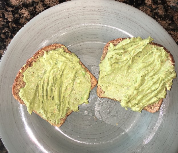 Pictured is avocado toast (with everything bagel spices – pepper, salt, onion, garlic and sesame seeds) on Ezekiel bread.